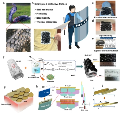 近期,江南大学纺织科学与工程学院/针织技术教育部工程研究中心研究团队实现了以蛇皮为灵感的鳞片织物结构防护材料的大规模制备。本工作提出的复合鳞片织物由柔软的织物底层和相互重叠的片状化硬质壳层鳞片共同组成,克服了轻质高强与柔软舒适这对天然矛盾,实现了防护材料的长时间舒适性穿着,这有望为未来材料结构创新设计提供启示,并为个人防护装备在各个工业领域的发展提供巨大的实质性优势。相关成果以“Large-Scale Fabrication of Snake Skin-Inspired Protective Composite Textiles”为论文标题在线发表在《Advanced Fiber Materials》期刊(IF=16.1)。江南大学针织中心2019级博士研究生刘青为论文第一作者;江南大学蒋高明教授团队马丕波教授、董智佳副教授及武汉纺织大学陈凤翔教授为论文共同通讯作者。该研究得到了国家自然科学基金项目(52373085和11972172)、中央高校基本科研业务费专项资金项目( JUSRP22026)、江苏省高等学校重点学科建设项目(PAP)等项目资助。论文全文链接为:doi.org/10.1007/s42765-024-00396-7。