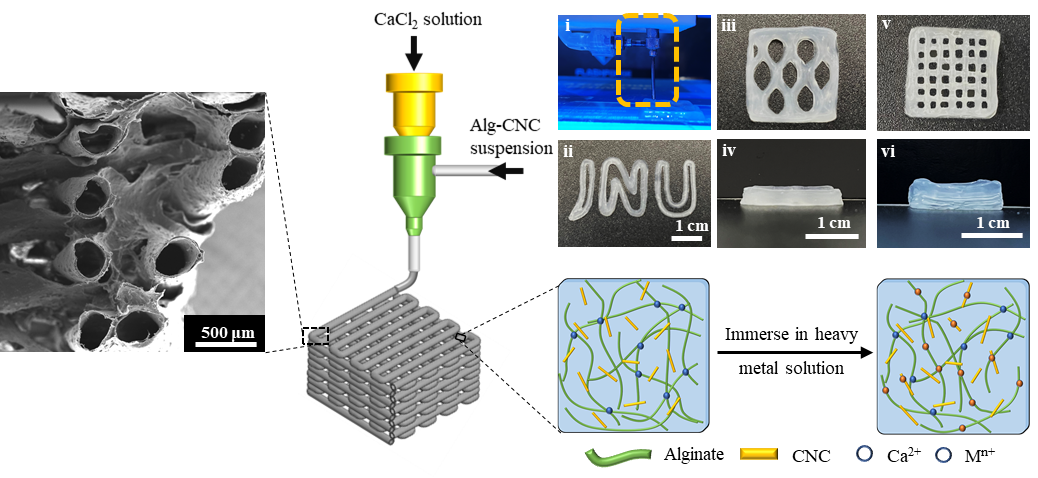 微挤压式同轴3D打印技术应用于制备三维多孔重金属吸附剂