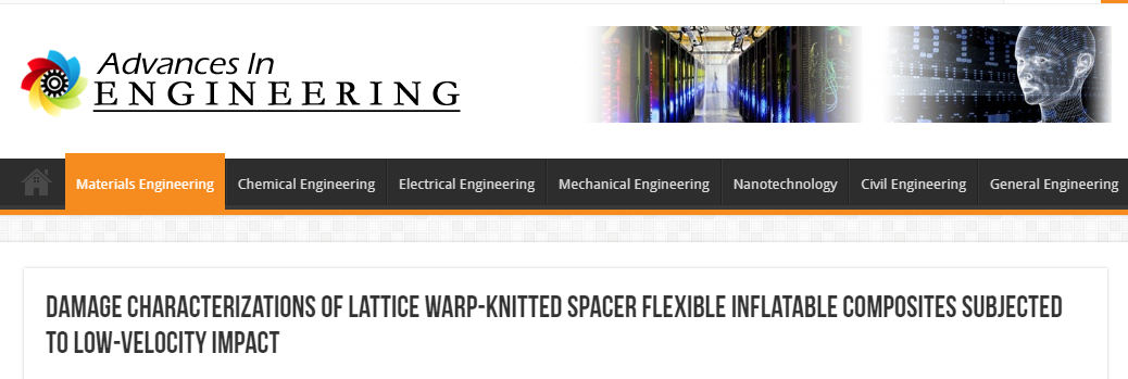 AIE关键科学文章链接:https://advanceseng.com/damage-characterizations-lattice-warp-knitted-spacer-flexible-inflatable-composites/。