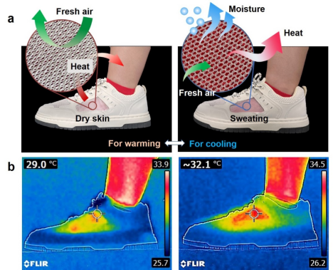 图5. 超百叶织物用于运动鞋鞋面的热湿管理。