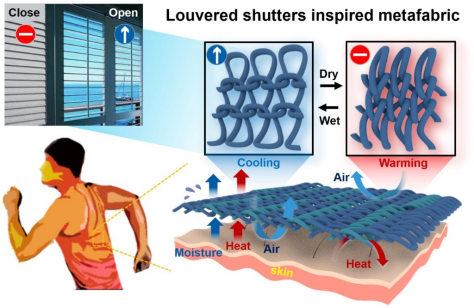 图1:源于百叶窗的设计灵感,实现基于分级结构设计的超百叶织物并用于热湿管理纺织品。