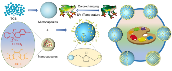 图2.双室微胶囊的结构及变色性能