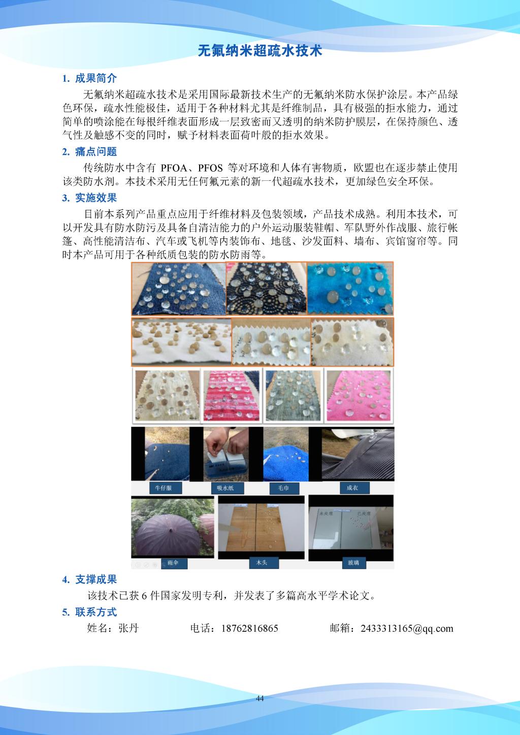 科研成果-无氟纳米超疏水技术