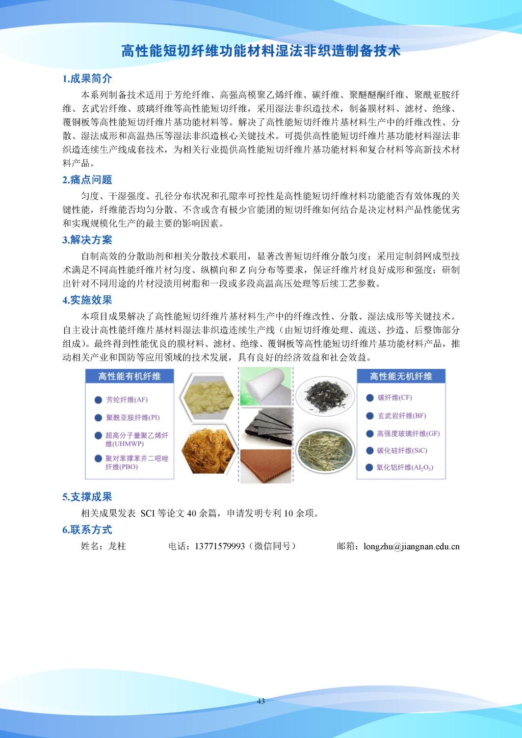 科研成果-高性能短切纤维功能材料湿法非织造制备技术