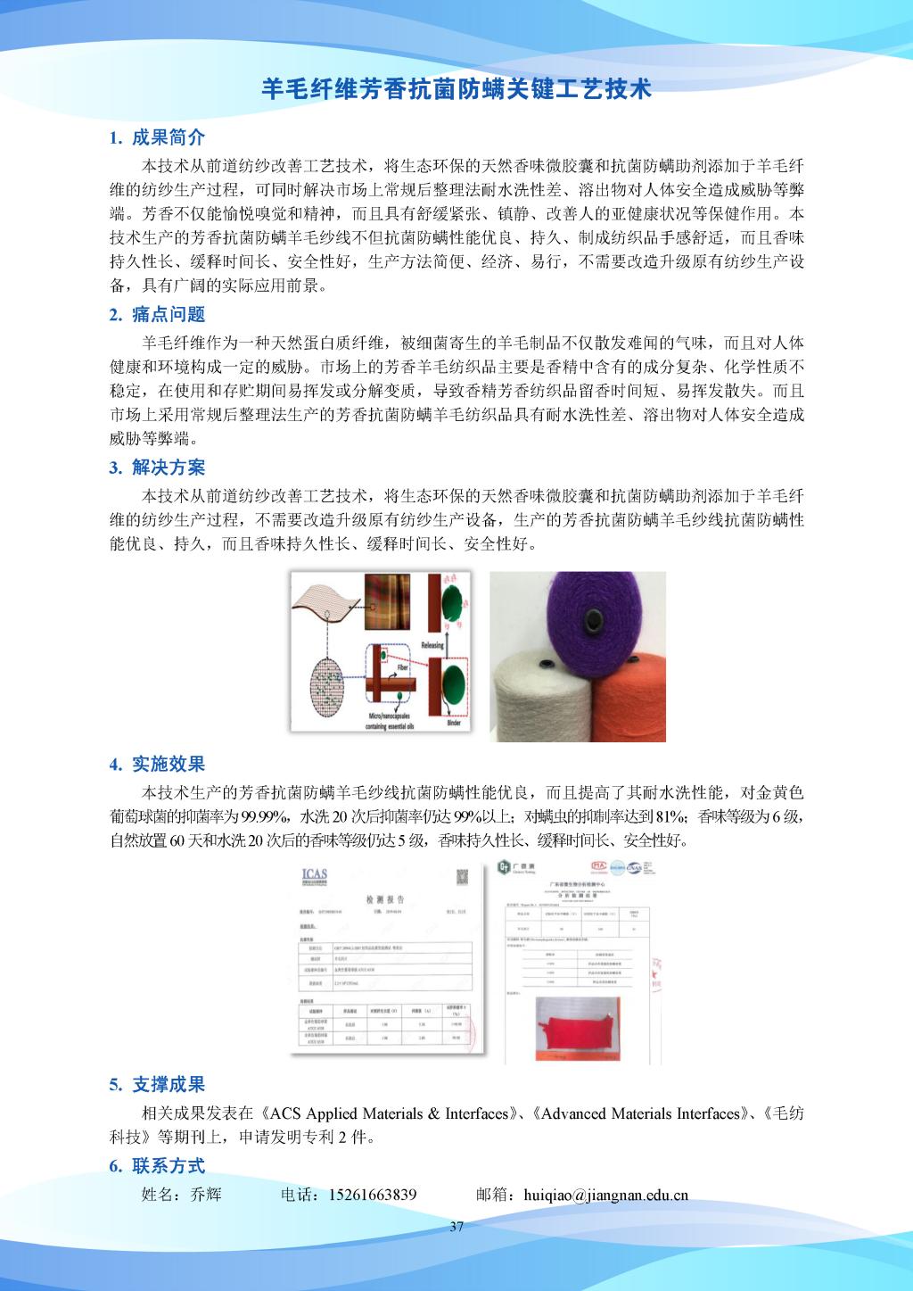科研成果-羊毛纤维芳香抗菌防螨关键工艺技术