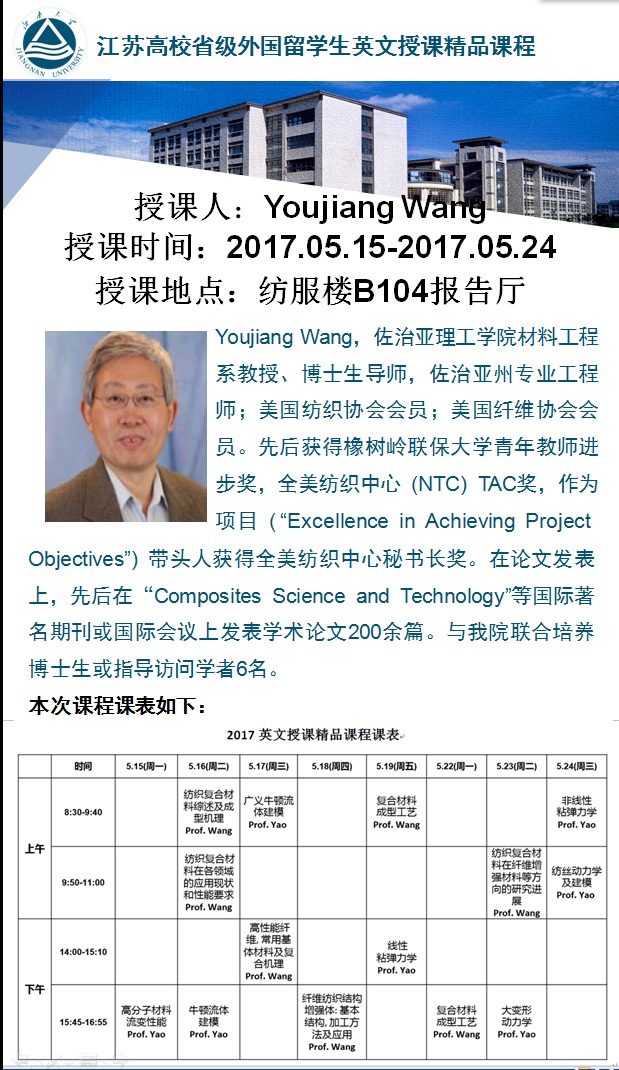 研究生院“名师讲坛”系列之八十四--- Youjiang Wang教授讲座通知