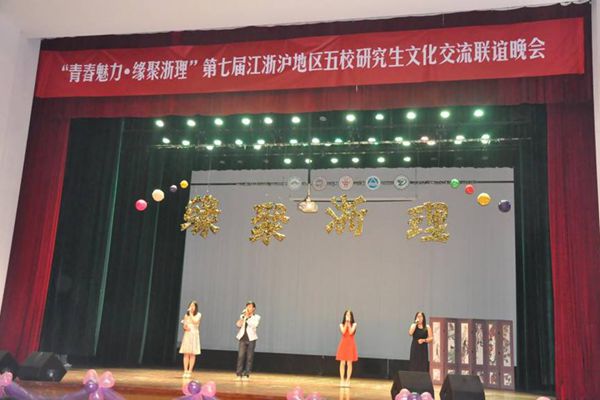 下午3点,五校师生以球会友,进行了精彩纷呈的篮球比赛,在我院篮球主力队员包杰、刘佳明、位东、于磊、宋晓亮、蒋黎等诸位同学的不懈努力下,连胜苏州大学、东华大学,最终已2分之差输给东道主浙江理工大学。我校篮球队以总积分排名第二的成绩获得了亚军。晚上6点半,由浙江理工大学主办的“青春魅力·缘聚浙理”五校联谊晚会为大家呈现了一场精彩的视觉盛宴。