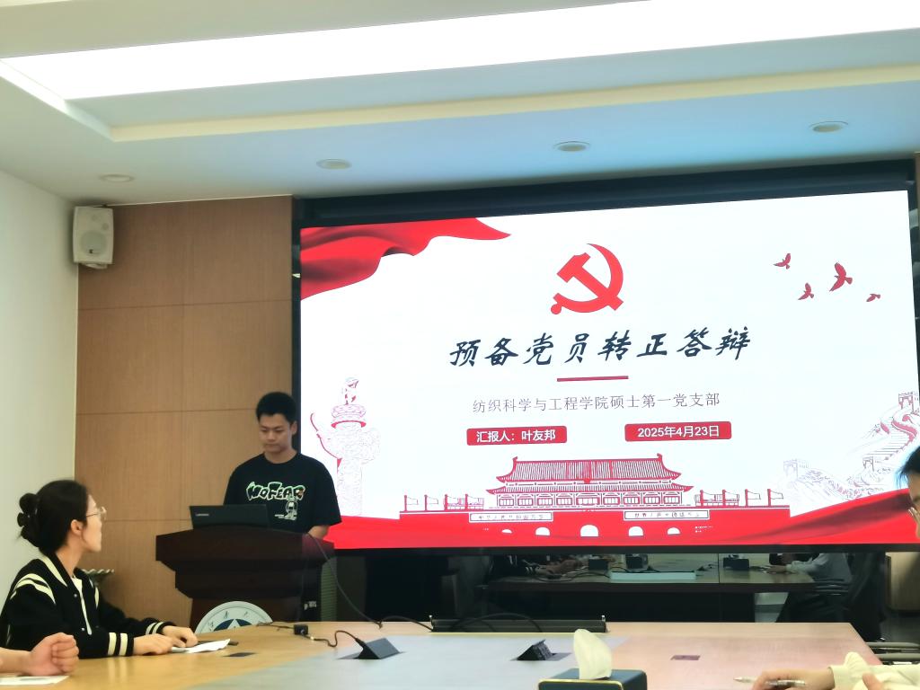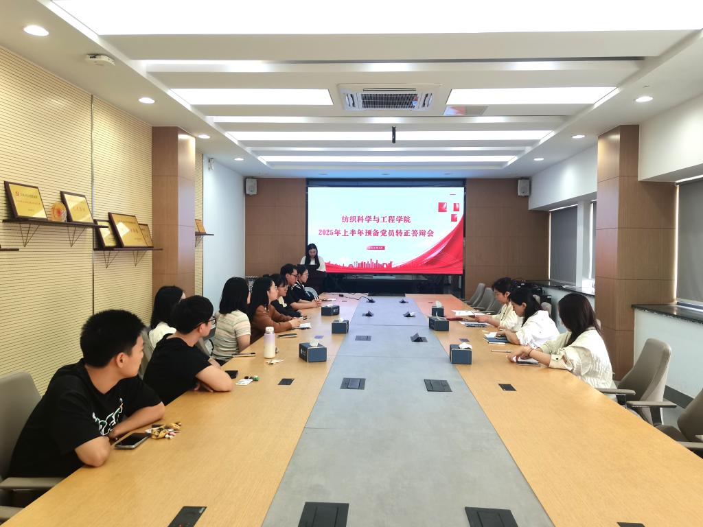4月23日,纺织科学与工程学院2025年上半年预备党员转正答辩会于A306会议室举办,纺织科学与工程学院特邀党建组织员沈波,组织员张志新,辅导员孙慧,纺织本科生党支部书记孙婷婷以及2025年上半年8名拟转正预备党员参加答辩会。