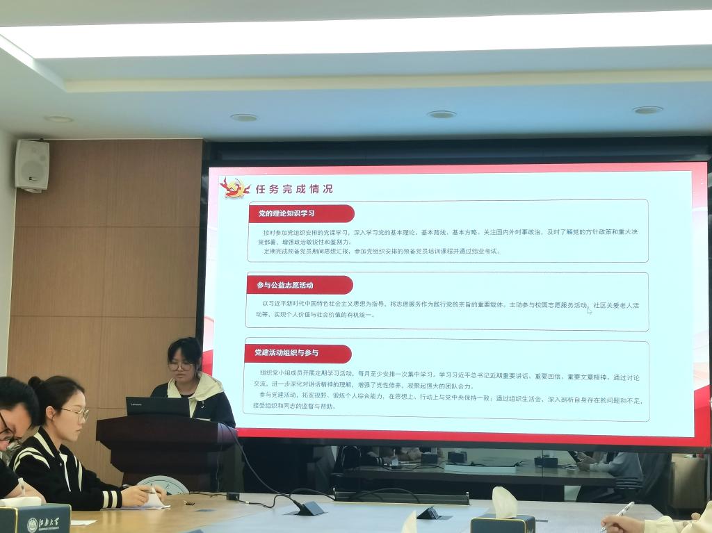 本次预备党员转正答辩会既是对预备党员的全面考察,更是生动的党性教育和党性锻炼。纺织科学与工程学院将持续秉承“控制总量、优化结构、提高质量、发挥作用”党员发展原则,切实提升党员发展质量,提优党员队伍结构,引导全体党员发挥先锋模范作用,为党和人民事业拼搏奉献,在新时代新征程上留下无悔的奋斗足迹!