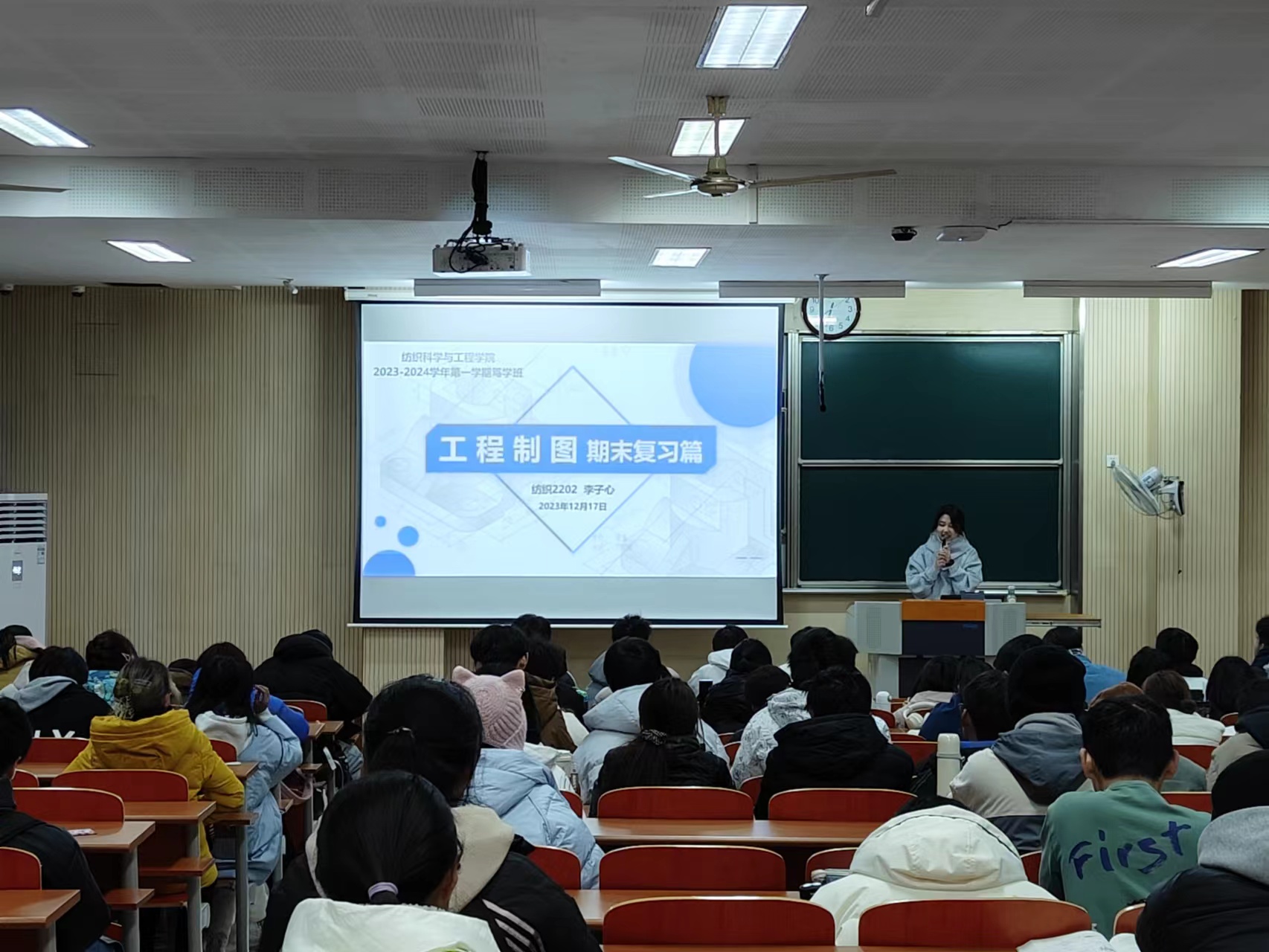 为营造良好学习氛围,引导2023级新生调整学习状态,11月16日至12月17日,纺织科学与工程学院学风促进中心开展为期1个月的笃学班活动。活动邀请了4位成绩优异的学业辅导员作为主讲人,他们围绕高等数学、工程制图两门公共基础课的知识重点、难点和易错题型,帮助2023级新生进行阶段性的复习,从而更好地应对期末考试。