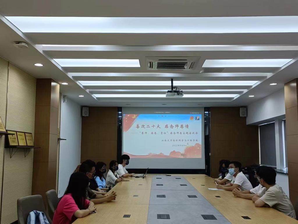 在第38个教师节来临之际,99日,纺织科学与工程学院以“喜迎二十大,感念师恩情为主题,在学院A306会议室开展尊师、感恩、责任感念师恩学生座谈会,学院研究生、本科生各年级学生代表以线下线上的形式同步参加,会议由学院学生会李英荟同学主持。