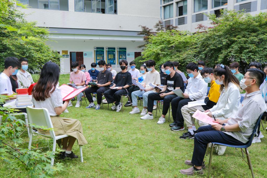 4月22日下午,在第27个“世界读书日”到来之际,纺织科学与工程学院组织团员青年开展“读红色经典,做信仰传人”草坪诵读会,学院40余名团员青年参加活动。诵读会由轻化1903班“张闻天特称团支部”和轻化2103班团支部联合承办,活动由轻化1903班团支部书记张宇婷同学主持,学院分团委书记陈裕参加上述活动。