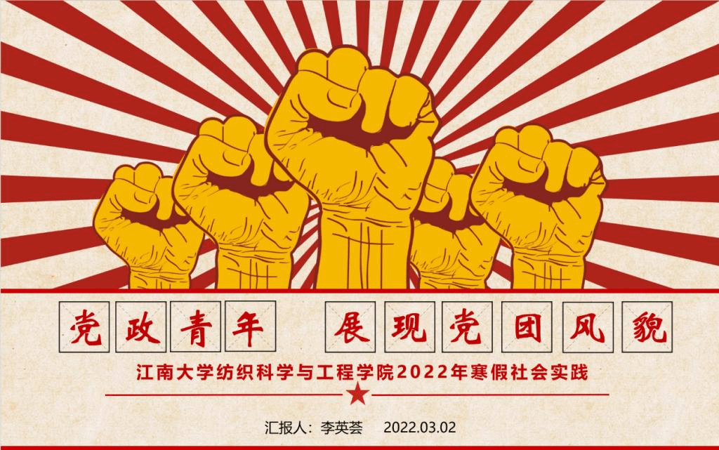 2022年寒假期间,为深入学习贯彻习近平新时代中国特色社会主义思想,认真学习宣传贯彻党的十九届六中全会精神,根据团中央、团省委、校团委相关文件精神,结合疫情防控各项工作要求与我校工作实际。纺织科学与工程学院分团委共组织60余支社会实践团队奔赴全国各地,开展了一系列形式多样、内容丰富、展现当代大学生风采、传递青春正能量的社会实践活动。经前期审核评选,选出八支优秀实践团队,以社会实践成果展示的方式,分享实践队员在实践过程中的所见所悟、所思所想,共话成长,以青年之声喜迎建团百年。