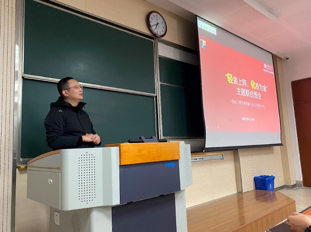 轻化2103班班主任郑磊老师指出,组织此次班会是为了做好新生转型教育,解决低年级学生对大学规划及专业发展的迷茫问题,用专业的视角、朋辈的力量助力低年级学生向上成长,向下扎根。