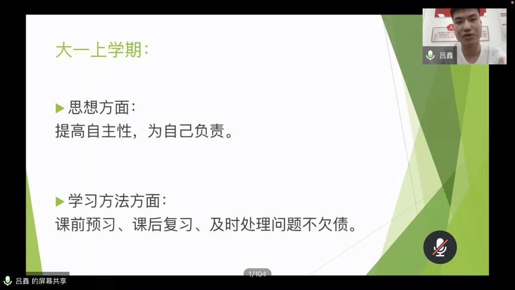 首先,优秀学生代表轻化1903班孙熔声同学根据大学四年不同时间节点的学习任务特点,结合个人学习经历,对各阶段学习重点做了提示和讲解。他提醒大家,站在新起点要摆正学习态度、转变学习方式,提高学习的主观能动性。随后,优秀学生代表纺织1905班刘帅同学从“专业学习”和“综合素养提升”两方面展开,就英语四六级考试及通识基础课程学习、备考等方面,做了精彩分享,同时,他鼓励大家在学习之余积极参加学科竞赛,利用好学校现有资源,不断提升个人综合素养。