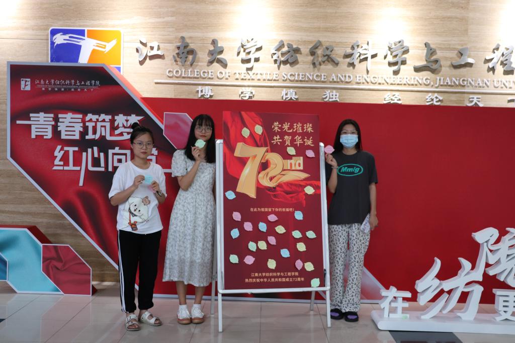 在祖国72华诞到来之际,纺织科学与工程学院组织开展丰富多彩学生活动喜迎国庆,向伟大的祖国献上最真挚的祝福。