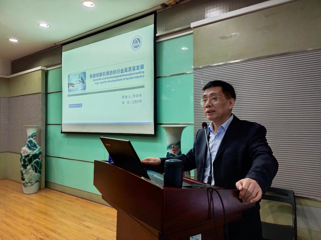 4月22日晚,纺织科学与工程学院在学院A103报告厅举办创新成长训练营专家讲座,讲座邀请江南大学针织技术教育部工程研究中心主任蒋高明教授作报告,报告以《科技创新引领纺织高质量发展》为主题,学院第一届创新成长训练营全体营员聆听本次讲座,讲座由学院党委副书记、副院长陈艳君主持。