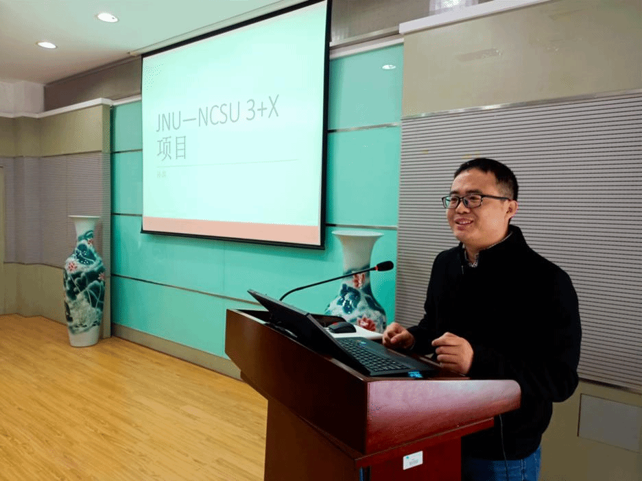 首先,孙昌老师对北卡“3+X”海外交换项目进行介绍。他表示,美国北卡罗来纳州立大学作为北卡罗来纳州最大的大学,是全美优秀的研究型大学之一,农业、设计、工程和纺织学科为杰出科目,学校有19位美国科学院或工程院院士。北卡罗来纳州立大学纺织学院一直与江南大学纺织科学与工程学院保持着密切良好的学术交流关系,双方许多专业课程的设置能够促进学术研究的交融共通。孙老师细致介绍了“3+X”项目的实施方案,对参与项目学生的素质要求、申请项目的时间节点、奖学金激励制度等方面进行解读。