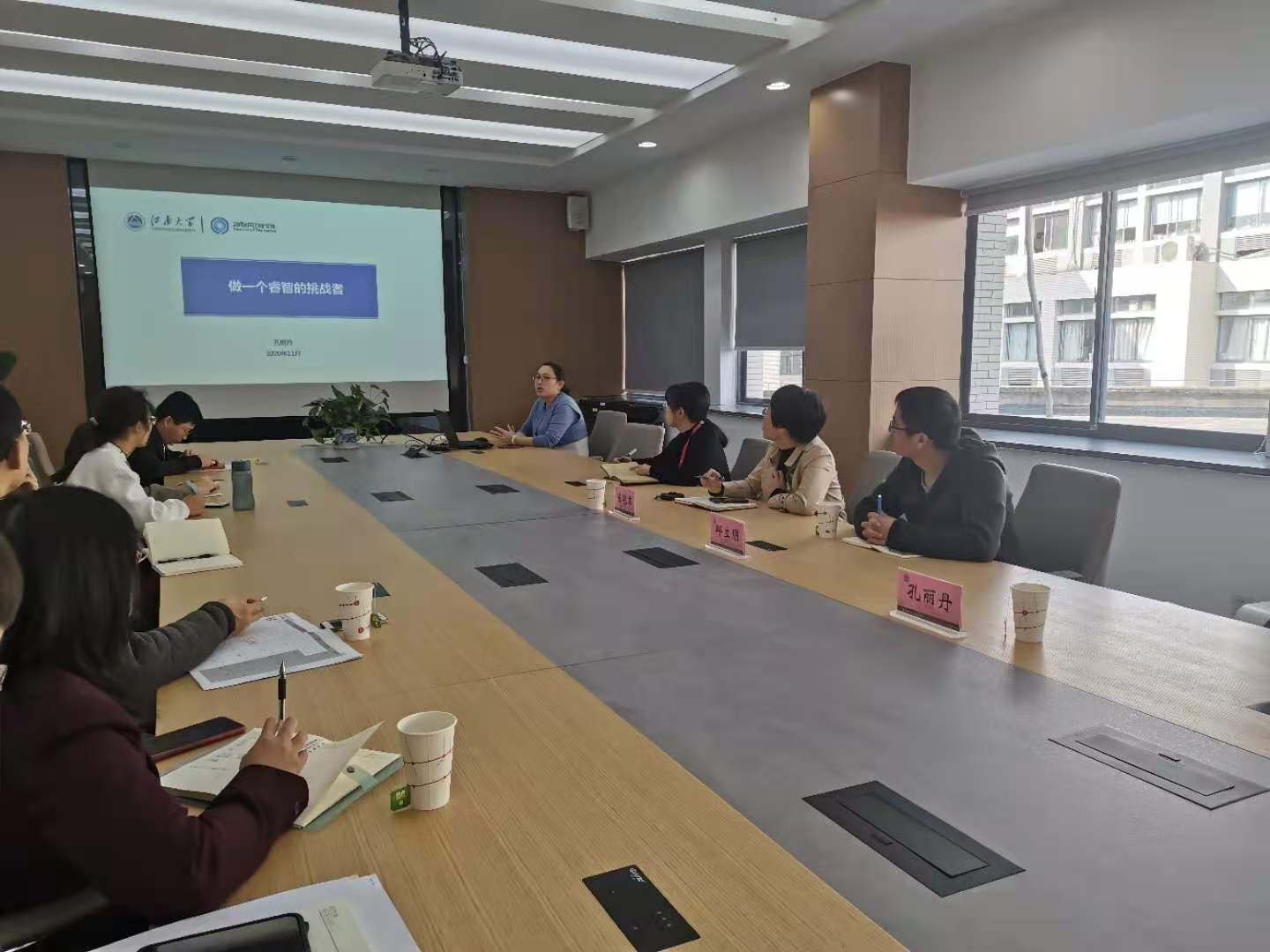 会议伊始,陈艳君副书记对参与本次会议的两位嘉宾表示诚挚的欢迎,同时也希望能通过学院间的交流和互动促进各学院学科竞赛的不断发展。随后,孔丽丹老师以“挑战杯”为例,将竞赛的整体情况做了简要介绍,并结合往年竞赛组织经验,着重分析了本次大赛的时间节点、大赛章程、作品准备等方面内容。