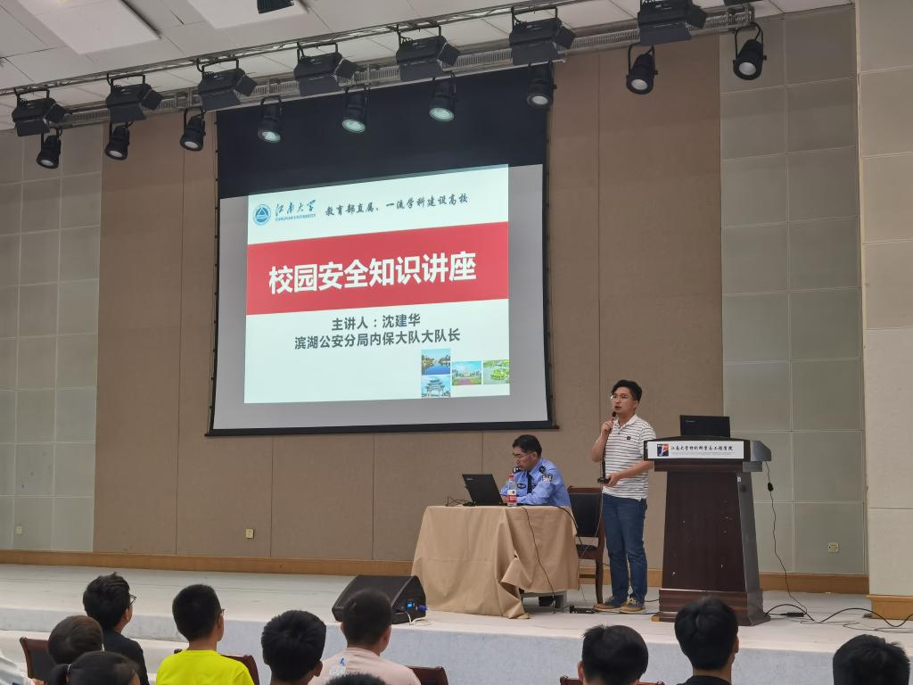 为切实做好新生入学转型教育工作,提高2020级本科生安全意识。近日,纺织科学与工程学院在学院C区活动中心举办2020级本科生安全知识讲座,本次讲座邀请无锡市滨湖区公安分局内保大队大队长沈建华警官主讲,讲座由学院2020级新生辅导员陈裕主持。