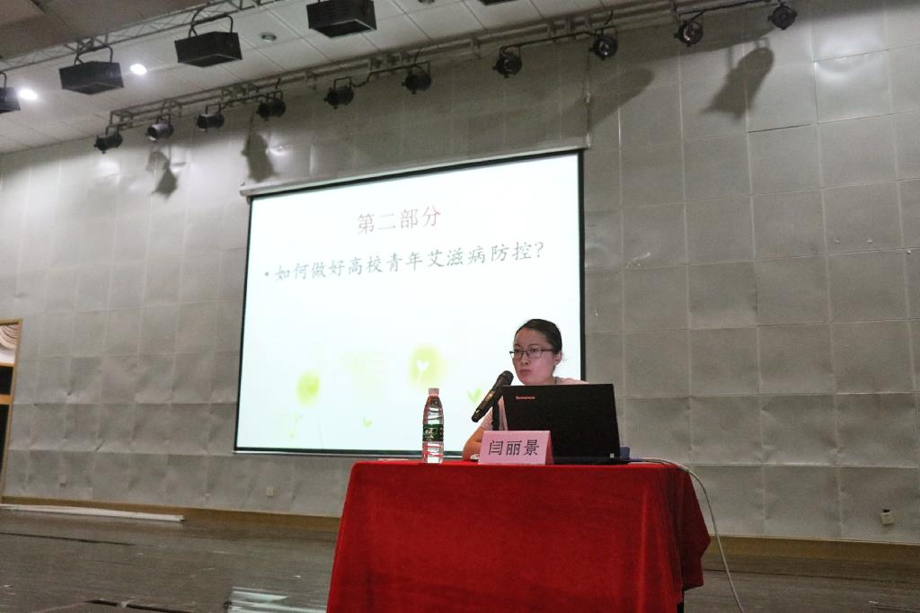 随后,校医院闫丽景医生首先解释说明了大学生医保就医的使用办法与注意事项,然后从艾滋病的基本概念、传染途径、流行概况和危害四个方面介绍艾滋病。闫医生强调,我国艾滋病已进入扩散期,同学们要提升健康意识,洁身自好,爱惜生命。