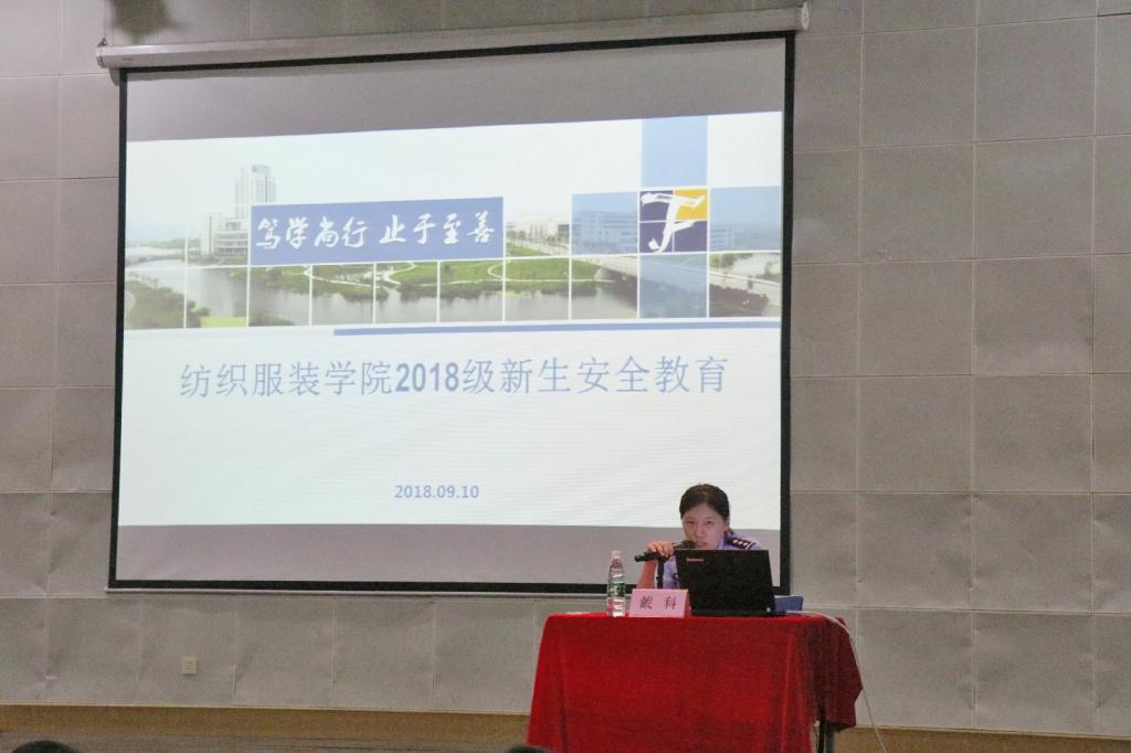 为提高学生的安全防范意识,构建文明和谐、平安稳定的校园环境,9月10日晚,纺织服装学院在C区表演厅举办面向2018级新生的大学校园安全教育讲座。本次讲座特别邀请了雪浪派出所江南大学社区民警戴科警官和校医院闫丽景老师执讲,讲座由18级辅导员于乐主持。