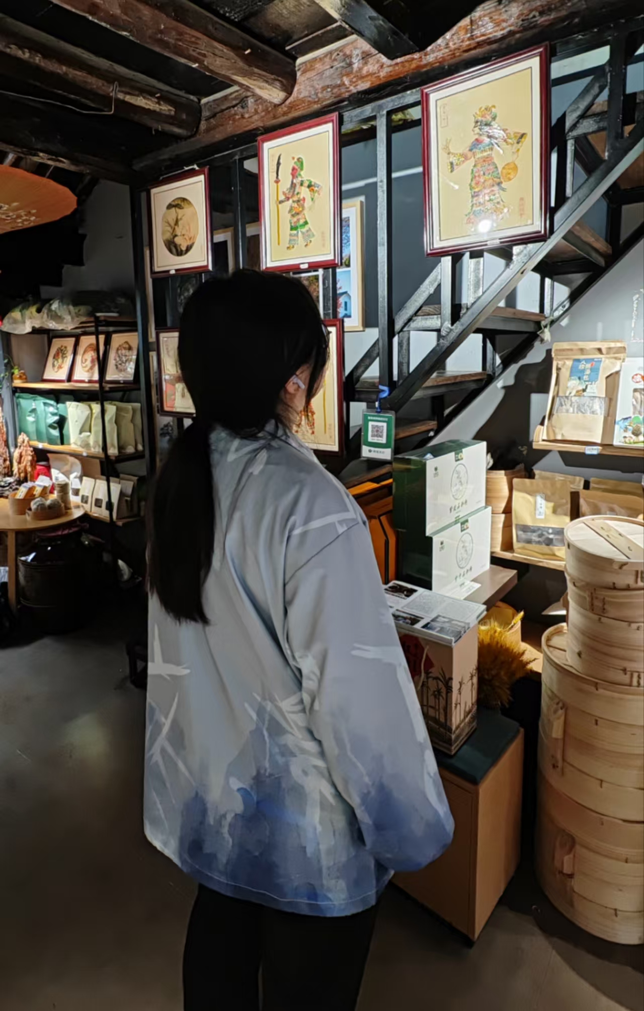 地方特色千秋韵,非遗传承万代功。在非遗文化的调研中,纺织2205班的龚李文淇同学前往云南省保山市板桥镇青龙街,探访当地的非遗文化,感受将传统文化与旅游业结合所带来的经济效益。纺织2203班的李诺琦同学则前往福建泉州市蟳埔村,深入研究“簪花围”这一非物质文化遗产,从简朴的装束中感悟其中寄托的祝福,感受中华文化的生命力与希望。