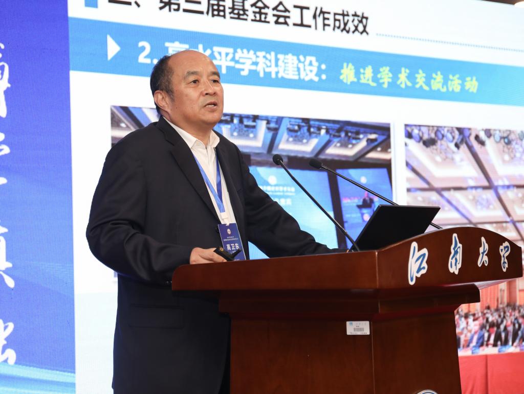 高卫东代表江南大学纺织教育发展基金会第三届理事会作工作报告,他从基金会概况、工作回顾、工作成效等方面详细介绍了第三届理事会助推高质量人才培养、高水平学科建设所开展的工作和取得的成绩。着眼未来,他希望新一届理事会能创造联系、增强新生力量,主动服务、强化平台作用,进一步打造“学校-校友企业”创新发展共同体。