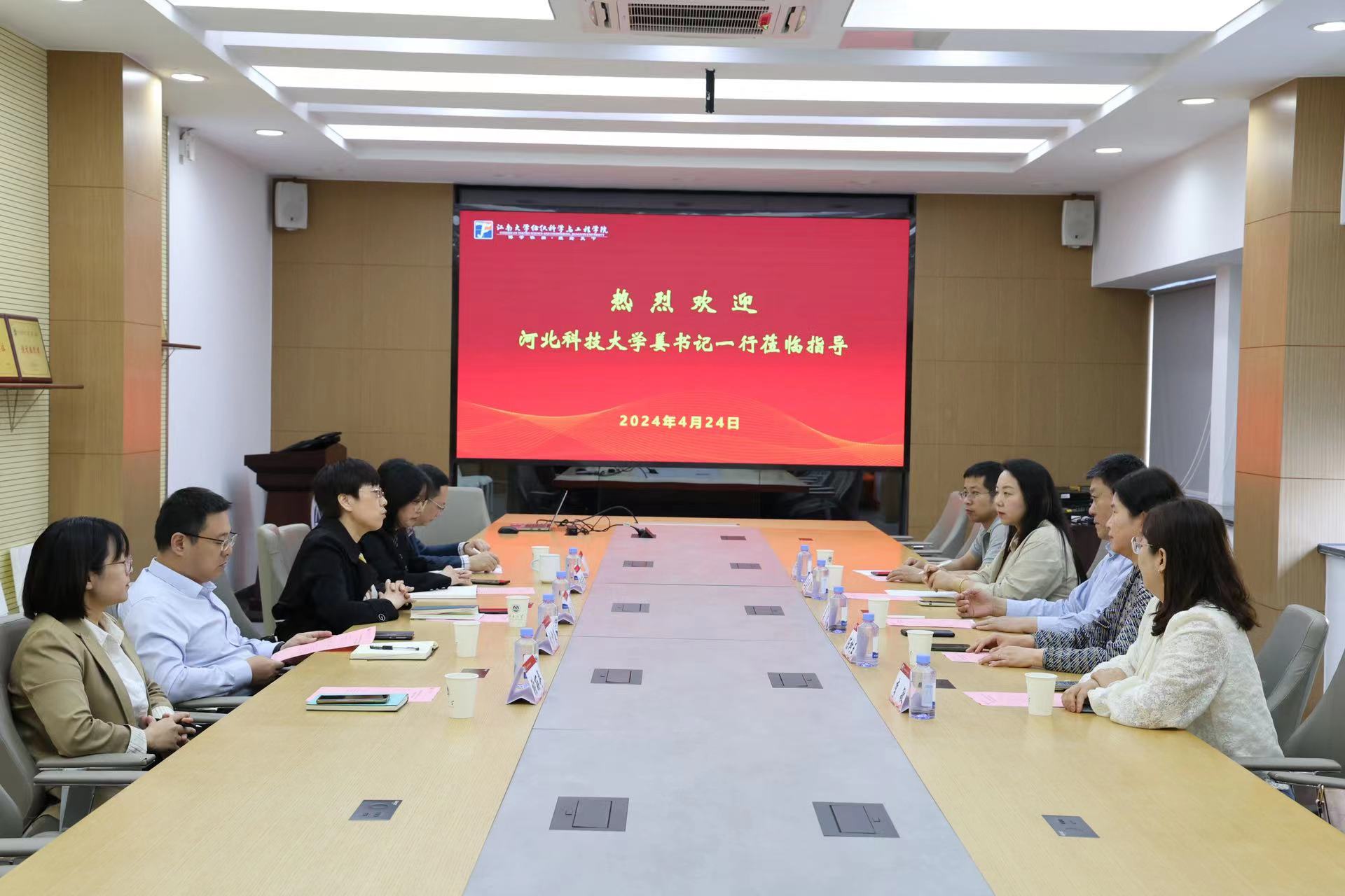 4月24日,河北科技大学党委常委、纪委书记、监察专员姜昆,河北科技大学纺织服装学院党委书记陈树玉等一行来纺织科学与工程学院交流座谈。学院党委书记张菁燕、院长付少海热情接待。