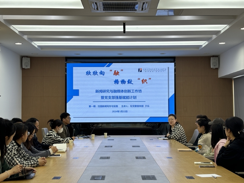 3月22日,纺织科学与工程学院在A306会议室举办“欣欣向‘融’,格物致‘织’ ”新闻研究与融媒体创新工作坊第一期,校党委宣传部于乐老师受邀作专题培训。学院师生党支部宣传委员,学生会、研究生会各部门宣传骨干参与了本次培训,培训由学工办副主任任学敏主持。