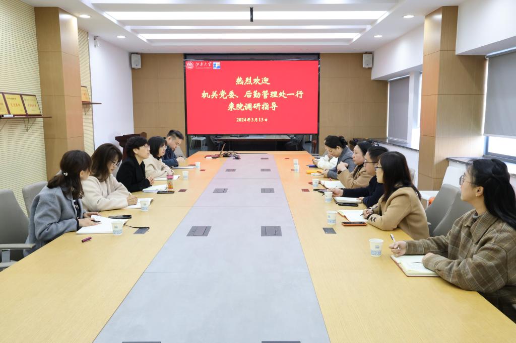 3月13日上午,机关党委书记兼党委组织部副部长张菁,后勤管理处处长吴光明,机关党委委员、统战部副部长王冰,党委办公室副主任代卉一行来到纺织科学与工程学院,开展机关作风、后勤管理服务等专项调研。学院党委书记张菁燕,党委副书记、副院长杨莉勤,以及办公室主任、分工会主席、专职组织员参加座谈交流。
