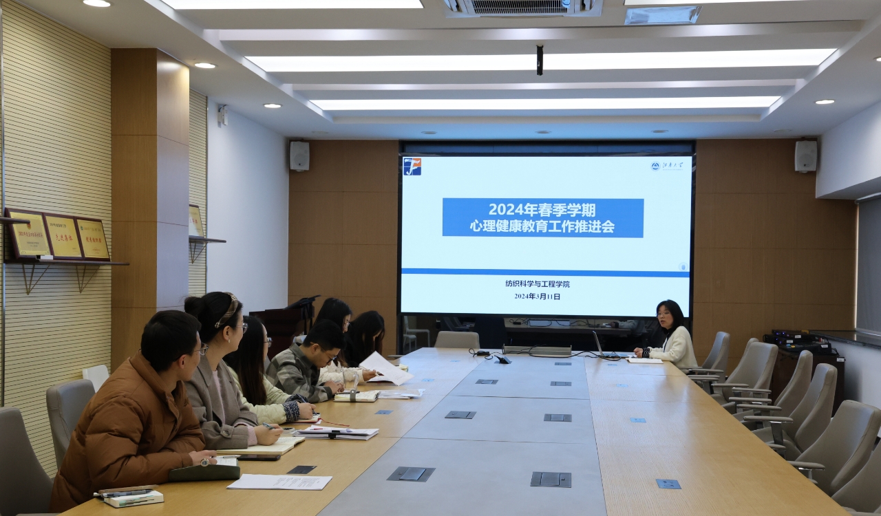 3月11日下午,纺织科学与工程学院召开新学期学生工作例会暨2024年春季学期心理工作推进会。学院党委副书记、副院长杨莉勤及全体辅导员参加会议。