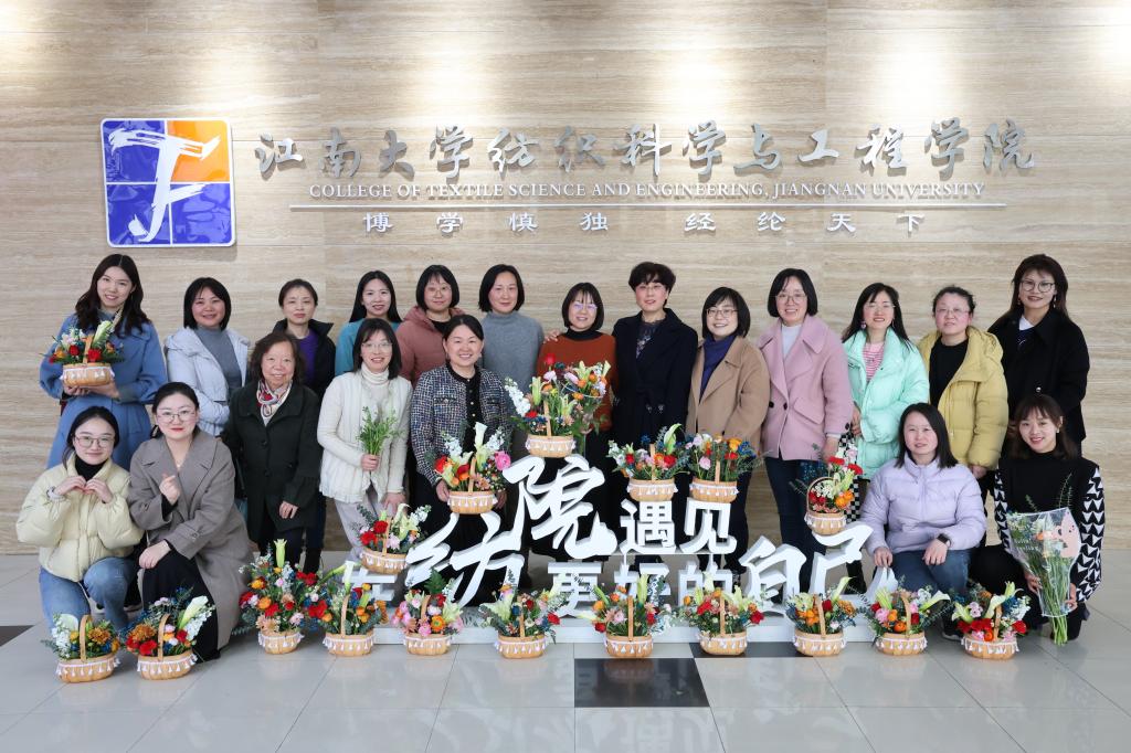 人间最美三月天,春花烂漫展新颜。在第114个“三八”国际妇女节来临之际,为弘扬时代精神,展现巾帼风采,3月6日,纺织科学与工程学院分工会举办了“花韵绽芳华 巾帼向未来”三八妇女节创意插花主题活动。活动旨在丰富女教工文化生活,抒发生活之美,展现优雅情怀,激发工作热情。学院党委张菁燕书记、杨莉勤副书记参加活动并为大家送上节日祝福和美好祝愿,该活动吸引了近50位学院女教工踊跃参加。