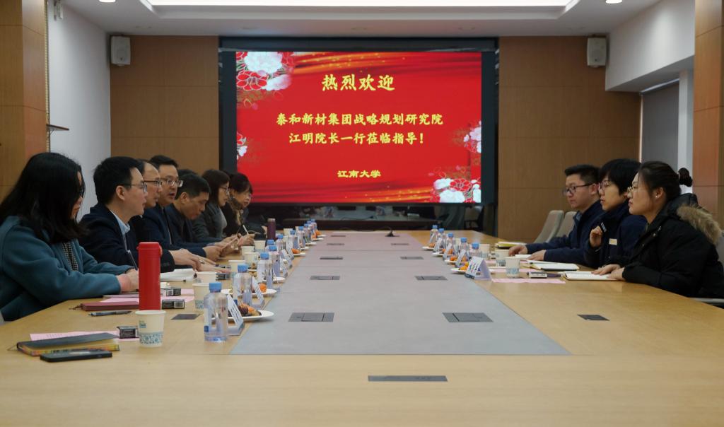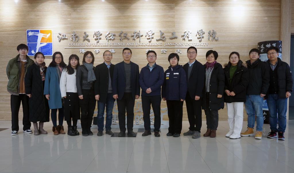1月30日,泰和新材集团股份有限公司战略规划研究院院长江明、副院长关振虹,携相关部门负责人一行莅临江南大学纺织科学与工程学院交流合作。学院院长付少海、产业技术研究院副院长谢卫忠、学院副院长马丕波、针织技术教育部工程研究中心主任蒋高明、副主任丛洪莲,以及十余名教授出席会议。会议由马丕波主持。