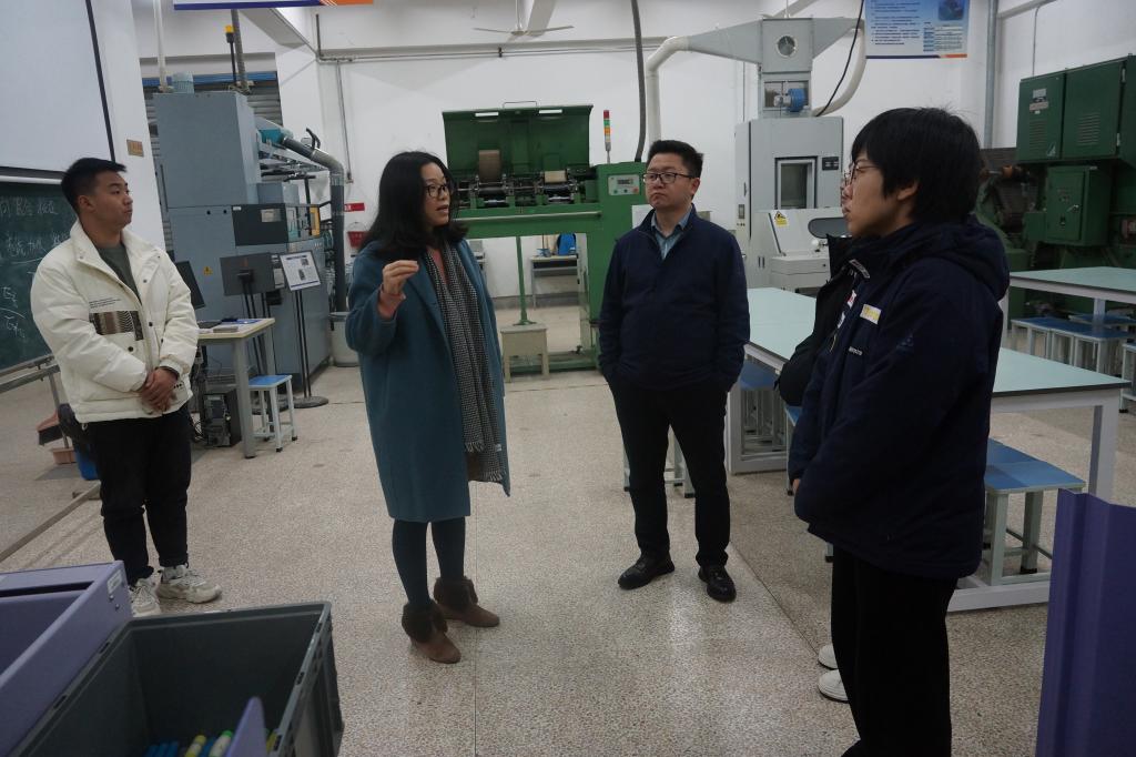 在会议开始前,泰和新材集团战略规划研究院江明院长一行还参观了纺织科学与工程学院纺纱和针织实验室。