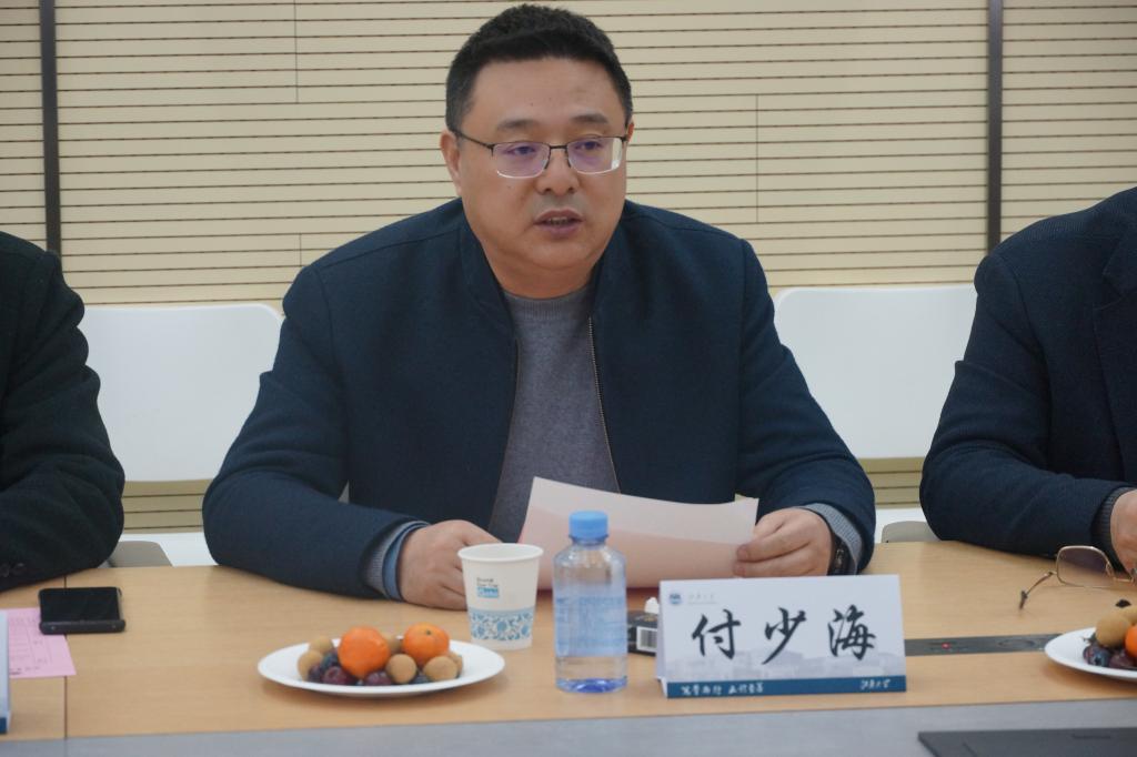 付少海首先对来访人员表示诚挚欢迎,对泰和新材的支持表示衷心感谢,随后介绍了学院目前的一些研究方向。他提到,近年来,学院立足独特优势,在纺织材料等领域取得了长足发展。学院历来重视校企合作,希望泰和新材此次来访交流,能为今后校企双方搭建广阔的合作平台,通过优势互补、双向赋能,共同助推纺织行业高质量发展。
