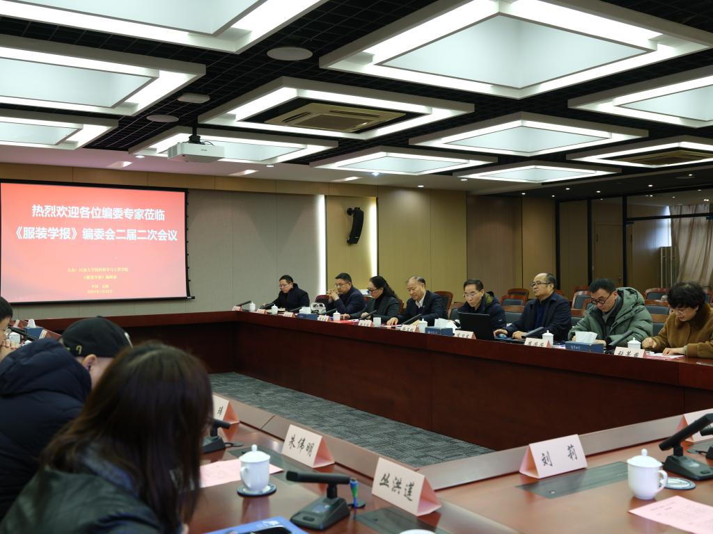 2024年1月22日上午,《服装学报》编委会二届二次会议在江南大学行政楼B307召开。中国工程院院士、武汉纺织大学校长、《服装学报》编委会主任徐卫林,江南大学原副校长、《服装学报》主编高卫东,来自清华大学、苏州大学、北京服装学院、浙江理工大学、军事科学院军需工程技术研究所等10余所高校科研单位的编委,以及江南大学纺织科学与工程学院党政领导和学报编辑部的老师共40余人出席会议。江南大学党委常委、副校长顾正彪出席会议并致辞。