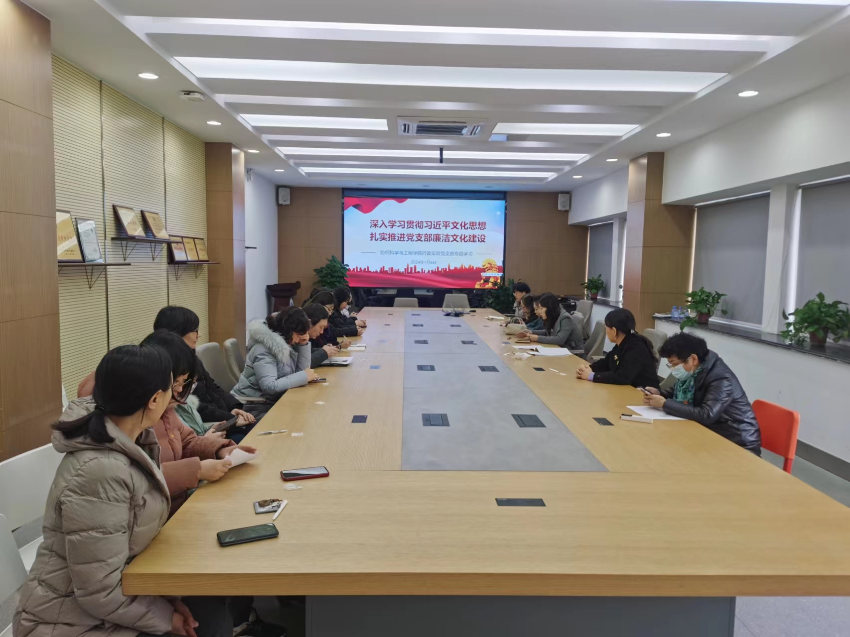 1月8日下午,纺织科学与工程学院行政实验党支部全体党员在学院A306会议室开展了“学习贯彻习近平文化思想 扎实推进党支部廉洁文化建设”专题学习,学院党委书记张菁燕以普通党员身份参加学习。