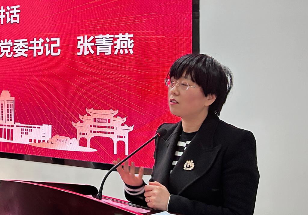 最后,张菁燕进行总结讲话,她对波司登集团长期以来支持学校教育事业发展和纺织服装行业人才培养表示衷心感谢,对获奖同学表示祝贺。张书记围绕“品质、创新、温暖”三个关键词,对同学们提出了殷切期望,她希望同学们能够学习波司登集团所展现的匠心品质,刻苦钻研,提升自我;同时,她结合创新引领发展理念,希望同学们能学习波司登集团不断探索、创新、多维发力的精神,在学习、科研上多思考、多探索。张书记寄语同学们要弘扬波司登“温暖全世界”的情怀,将这份爱心与责任传递下去,温暖自己,照亮他人,温暖他人,拥抱未来,温暖未来,成就自己。