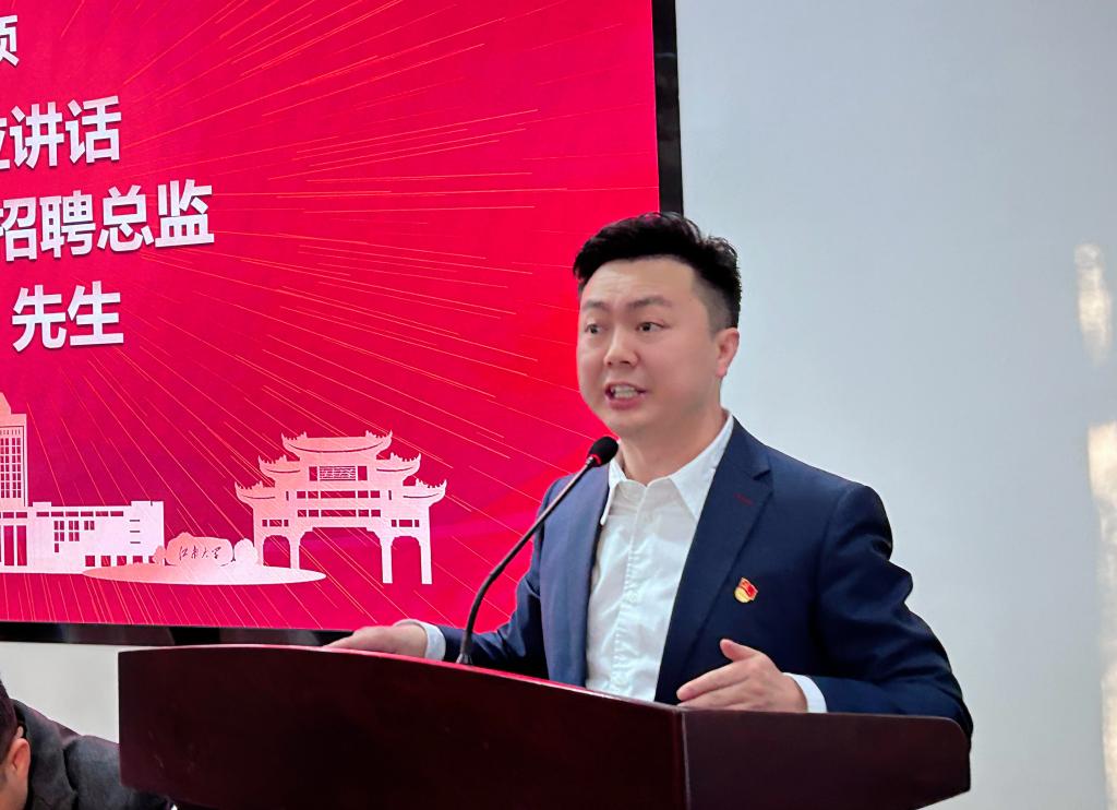 随后,陈祖鹏作为设奖单位代表发言,他代表集团向长期关心、支持波司登集团的学校师生表示感谢,并对获奖同学表示祝贺;他分享了集团健全的人才培养体系和强有力的组织人才保障;同时,通过系统化开展校企合作,与江南大学开展技术项目研发等深度合作,充分融合高校的科技优势和企业的产业优势。陈祖鹏表示,通过校企合作,越来越多的江南学子在波司登任职,且表现出色;他向大家阐述了波司登集团的核心价值观,鼓励同学们要不断攀登,不断超越自己,去勇争第一,勇占鳌头;他还希望双方的合作能够硕果累累,共创共赢更加美好的未来。纺织2104班李英荟、服艺2101班柯志萍2位同学向设奖单位献花,表达对波司登集团捐资助学善举的感谢。