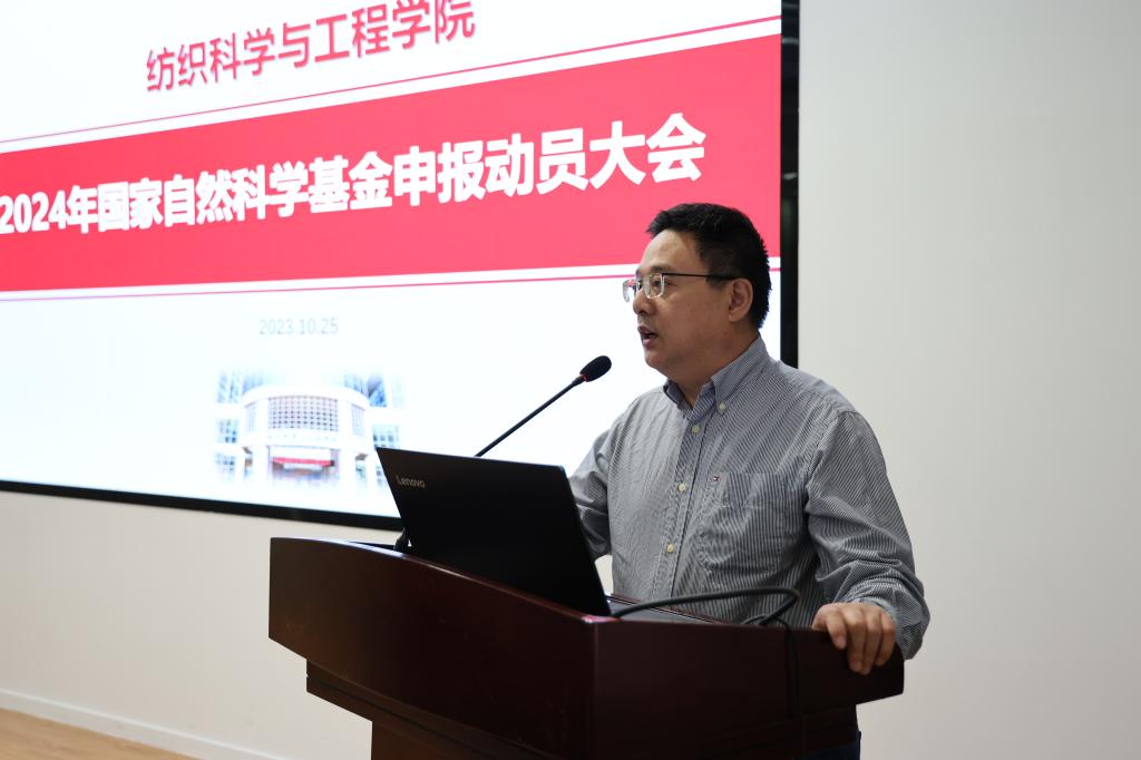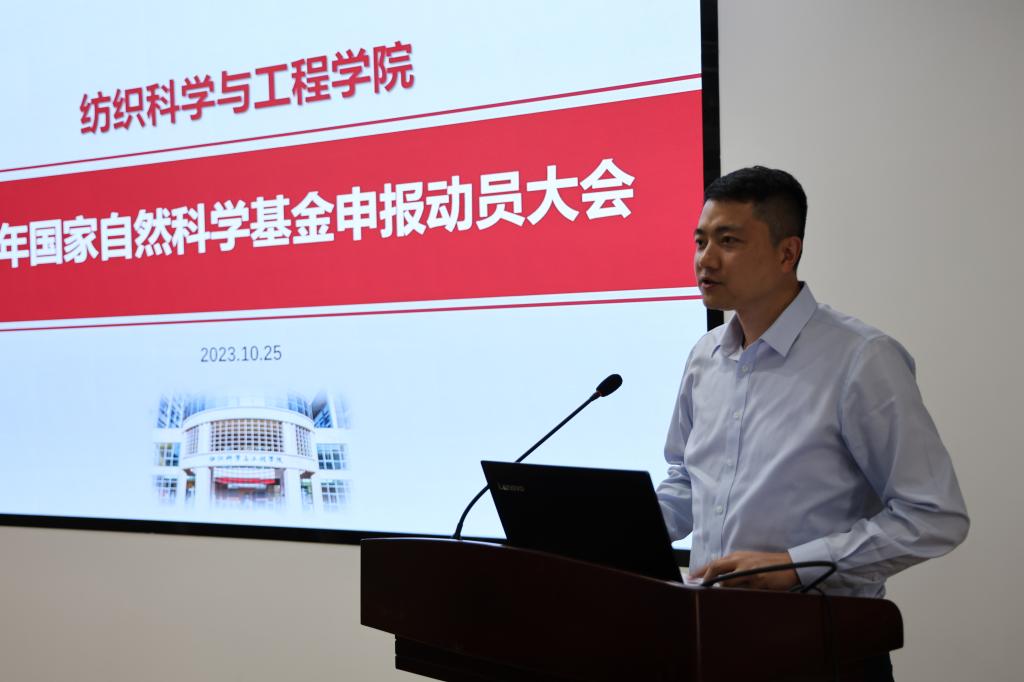 最后,纺织科学与工程学院院长付少海做动员会总结。他指出,国家自然科学基金项目的申报和立项,是衡量学科发展水平的重要指标。学院教师应紧紧围绕国家重大需求和学科前沿,以国家自然科学基金项目的高质量申报为载体,不断提高自身的科研发展目标和要求,努力提升科研创新能力和学术水平。他同时表示,学院将会全力服务各位老师的项目申报,制定并落实项目申报辅导相关工作,努力实现学院承担国家自然科学基金新的突破。