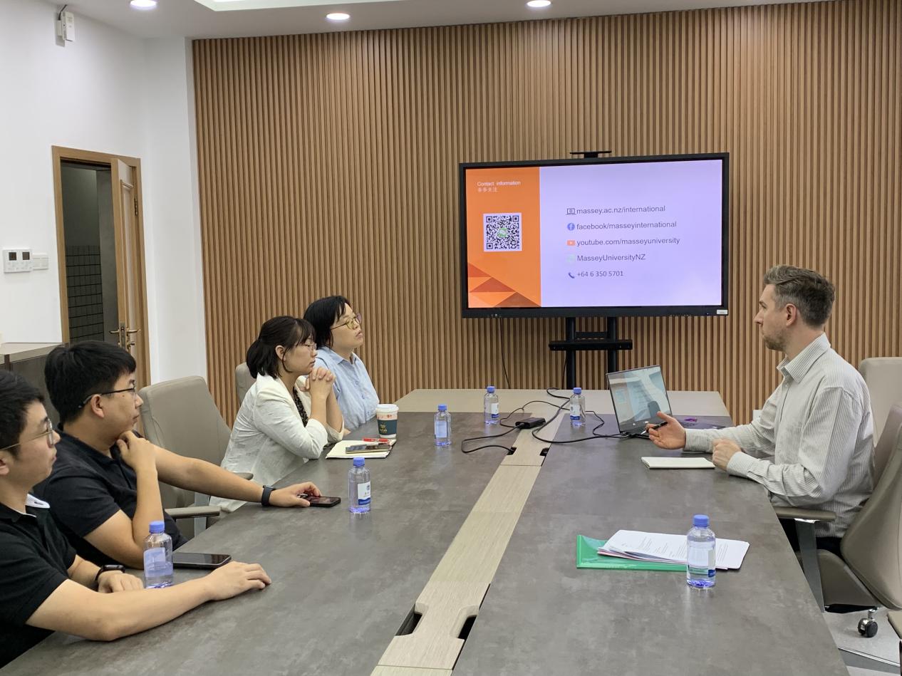 9月22日下午,新西兰梅西大学创造艺术学院副院长Oli Wilson教授到访纺织科学与工程学院,双方在学院A304会议室开展座谈交流,就推动学生联合培养事宜进行了深入讨论。纺织科学与工程学院副院长张丽平,院长助理孙丰鑫、徐荷澜,以及贺海军、翟胜利等相关老师参加座谈。