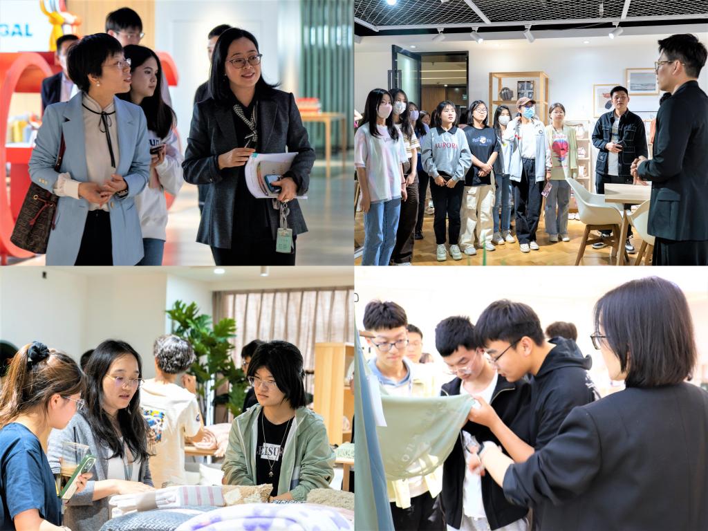 活动前,陈艳君一行与企业进行了调研交流,参观了解企业文化、经营发展情况、职业发展体系等。学生分为两组交替参观学习,工作人员为学生们详细介绍了公司的业务、产品、专业知识、就业方向等,通过近距离接触,学生们对纺织类企业有了更新更深的认识。