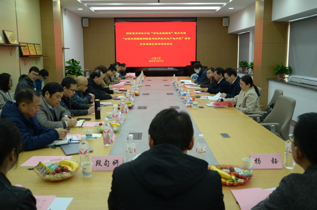3月27日,由江南大学牵头承担的国家重点研发计划“绿色生物制造”重点专项“纺织关键酶制剂制备与应用技术及产业示范”2022年度总结交流会议在江南大学顺利召开。项目咨询专家、中国工程院院士、中国农业科学院研究员姚斌,江南大学党委常委、副校长堵国成,南京工业大学科学研究院院长姜岷、苏州大学教授邢铁玲、无锡协新毛纺织股份有限公司教授级高工朱华君,江南大学纺织科学与工程学院党委书记张菁燕及项目各课题负责人、骨干成员等30余人参加会议。