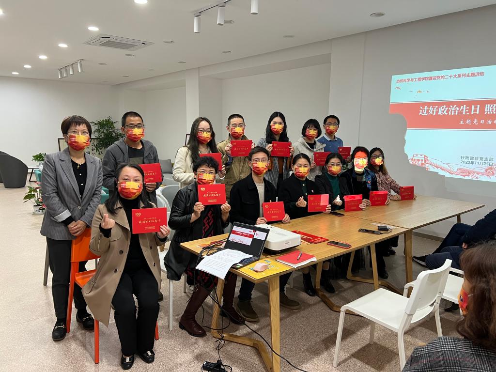 本次主题党日活动是纺织科学与工程学院“喜迎二十大,永远跟党走”系列活动之一,行政实验党支部通过专题学习党的二十大精神、举行集体政治生日仪式,切实增强党员的荣誉感、责任感和使命感,坚定信仰,踔厉奋发,勇毅前行,将党建工作与业务工作深度融合,立足岗位职责,牢记初心使命,在平凡的岗位上共同为理想信念不断奋斗!