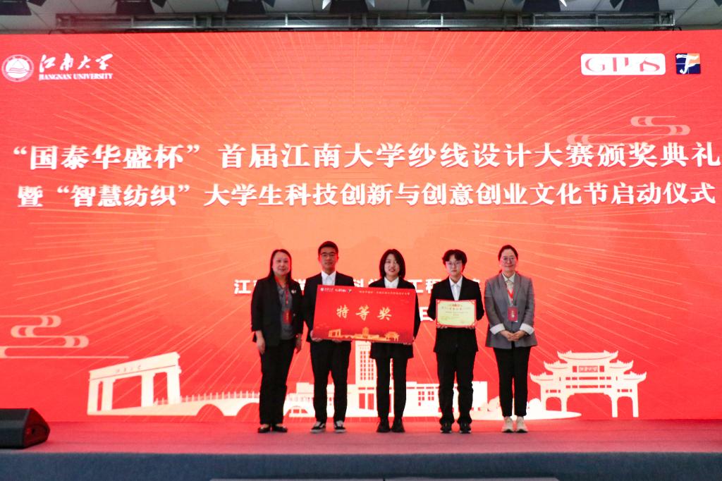 11月2日,由江南大学主办,江南大学纺织科学与工程学院承办,江苏国泰华盛实业有限公司冠名并支持的“国泰华盛杯”首届江南大学纱线设计大赛在纺织科学与工程学院举行。