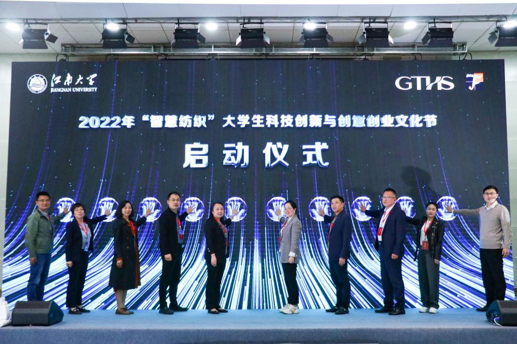 典礼上,顾华锋代表本次赛事的支持单位进行企业宣讲。他表示,江苏国泰华盛实业有限公司以人为本、坚持走高质量可持续发展之路,应用新材料,开发新产品,引进新技术,采用新工艺,不断创新市场需求。他代表公司,真诚希望更多优秀江南纺织学子能够投身于纱线行业中,设计出更多迎合市场需求的高质量产品。随后,校企双方嘉宾共同启动2022年“智慧纺织”大学生科技创新与创意创业文化节。今年文化节期间,纺织科学与工程学院将举办“国泰华盛杯”首届江南大学纱线设计大赛、“国泰华盛杯”首届江南大学绿色染整科技创新竞赛、“吉润杯”首届江南大学纺织服装类大学生创新创业大赛三项校级层面专业类学科竞赛,同时开展“青春芳华”创意扎染设计大赛2.0、迎新文化节等群众性科创活动。科创文化节旨在通过“专业搭台、学科融合、大众参与”的模式,营造“科创育人”浓厚氛围,助力创新型纺织科技人才培养。学生工作处处长助理肖学良教授作题为《传统纺织技术如何功能化》的大赛主题报告,他从传统纺织结构等四个方面展开,以具体项目为例,分享如何利用现有织物结构,解决交叉领域的科学研究问题。在颁奖环节,与会嘉宾为各获奖团队颁奖并合影留念。
