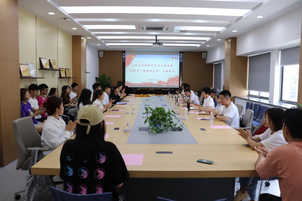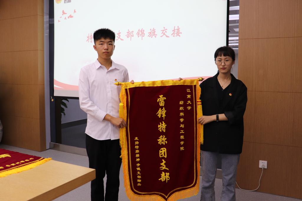 6月28日下午,纺织科学与工程学院“雷锋特称团支部”、“秦邦宪特称团支部”交接仪式在纺院A306会议室举行。纺织科学与工程学院党委副书记、副院长陈艳君,学院关工委常务副主任、特邀党建组织员袁伯兴,学院关工委委员、特邀党建组织员秦建亚,学院分团委书记陈裕,学院关工委学生委员王傲,学院学生会执行主席吕鑫,新老“特称团支部”支委,共同见证传承榜样精神的庄严时刻。