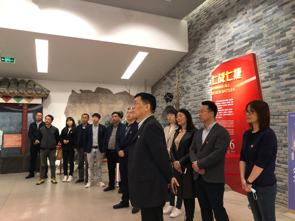 两个支部全体党员首先参观了苏中七战七捷纪念馆,苏中七战七捷纪念馆位于江苏海安县,建于1986年,原名“苏中七战七捷纪念碑管理处”,1998年更名为“苏中七战七捷纪念馆,是全国爱国主义教育示范基地。苏中七战七捷又称苏中战役,1946年7月13日—8月27日华中野战军在粟裕、谭政林的指挥下,以3万兵力迎击美式装备的国民党军12万之众,连续作战七次,仗仗奏捷,取得歼敌53000余人的胜利,延安总部发言人高度评价苏中战役,称其“七战七捷”。苏中七战七捷在政治上、军事上具有极其重要意义,它书写了中国战争史上以少胜多的典范篇章,加速了解放战争胜利进程,彰显了苏中军民伟大力量。