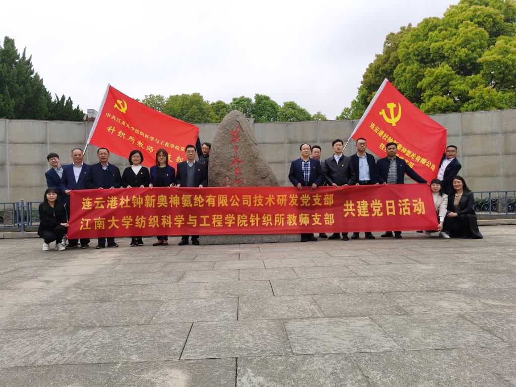 2021年4月23日,为了贯彻落实在“两个一百年”奋斗目标历史交汇的关键节点集中开展党史学习教育,做到学史明理、学史增信、学史崇德、学史力行,以昂扬姿态奋力开启全面建设社会主义现代化国家新征程,以优异成绩迎接建党一百周年,江南大学纺织科学与工程学院针织支部全体党员赴南通海安,与共建支部连云港杜钟新奥神氨纶有限公司技术研发党支部开展“追忆党史、攻坚克难”主题党日活动。